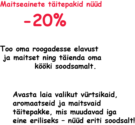 Maitseainete täitepakid – nüüd -20%! Täienda oma kööki soodsamalt!